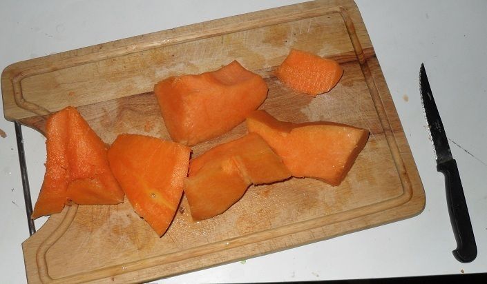 Commencez par retirer la peau du potiron. Faites-le ensuite revenir dans une casserole où vous aurez mis un peu d’huile au fond. Après 5 minutes, ajoutez les pommes de terre coupés en dés et 1,5L d’eau (déjà bouillante de préférence). Lorsque l’eau bout, faites cuire pendant 30 minutes, puis passez les légumes au mixer. Remettez ensuite cette « purée » dans la casserole avec l’eau de cuisson et faites encore mijotter pendant une dizaine de minutes. Ajoutez à ce moment-là l’ail, le persil, les épices. Salez et poivrez aussi.